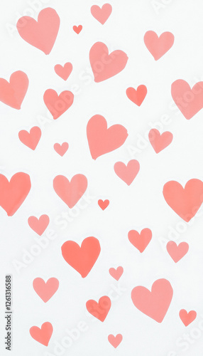soft watercolor pattern of red floating hearts on a white background, symbolizing love and romance for Valentine's Day