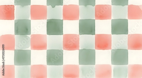 Soft Watercolor Plaid Pattern Abstract Geometric Background Texture in Pastel Coral and Sage Green