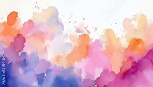 soft watercolor splash with abstract pastel blend of orange, purple, and pink hues for creative background and artistic project