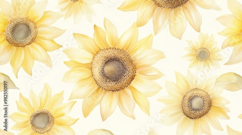 Soft watercolor sunflowers in pastel yellow and light beige, seamless floral pattern with subtle brush textures