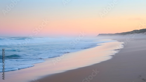 Soft waves crashing onto a deserted beach soaked in pastel sunrise AI generated illustration