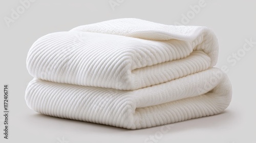 Soft White Blankets Stack on Light Gray Background for Cozy Home or Sleep Decor
