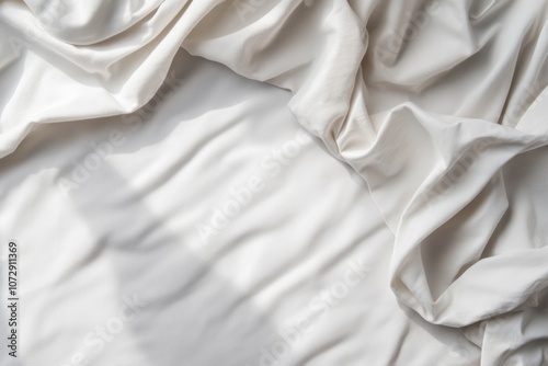 Soft white fabric draped elegantly on a surface, creating gentle folds and shadows in natural light