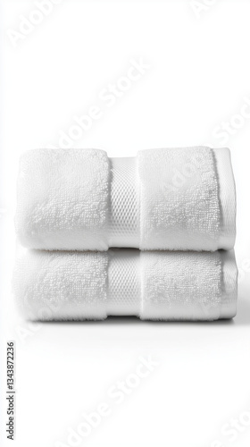 Soft white hospitality towels neatly rolled and placed on a white background, white towels on white background.