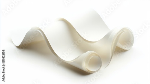 Soft white paper curl with smooth texture, minimalist and elegant design, highly detailed, isolated on white background, calm and sleek, inviting and delicate atmosphere