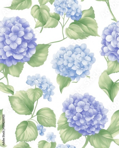 Soft-hued blue flower pattern featuring delicate hydrangea clusters creating a serene and calming visual
