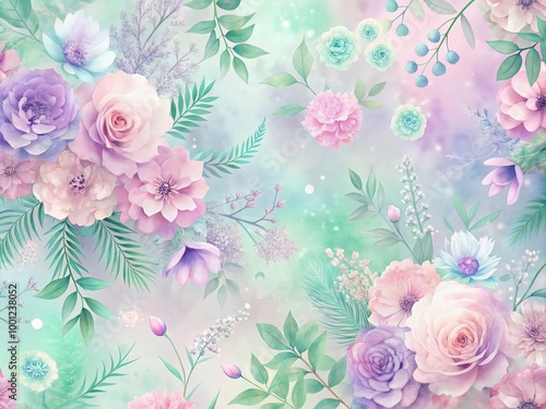 Softly blended pastel hues of pale pink, lavender, and mint green create a calming, whimsical background ideal for