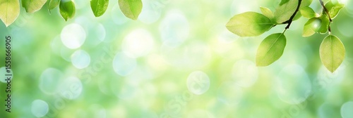 Softly Blurred Light Green Background with Lush Foliage and Sunlight for Serene Nature Presentations