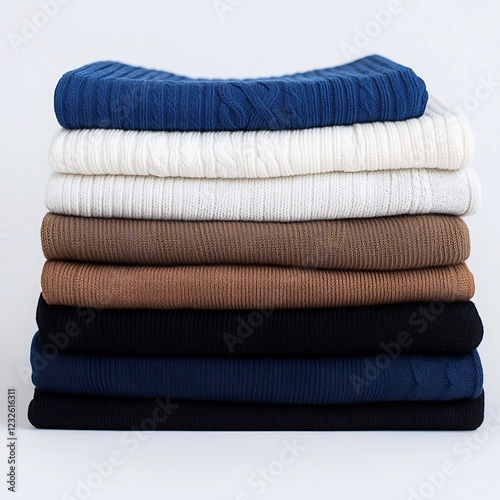 Softly folded neutral ribbed knit fabric stack. AI Generated
