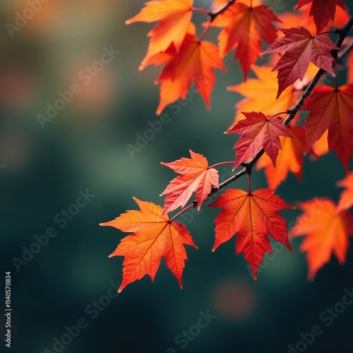 Softly glowing orange-red leaves dangle from slender tree limbs, deciduous tree, autumn
