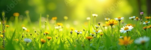 Softly swaying wildflowers in a lush green meadow, nature, wildflowers, sunlight
