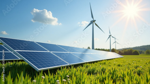 solar cells windmills blend nature scene promoting clean energy concepts globally environmental days