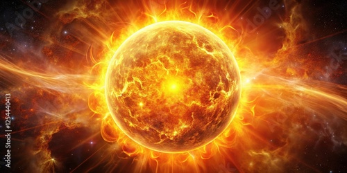 Solar flare engulfing the background with intense orange and yellow hues, flames rising from the surface of the sun , cosmic energy, celestial phenomenon
