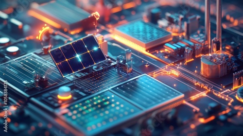 Solar Panel on a Futuristic Circuit Board