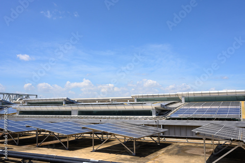 Solar panel on rooftop, alternative electricity energy source for commercial and factory building.