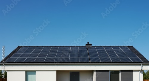 Solar Panels on a Modern House Roof on Clear Day