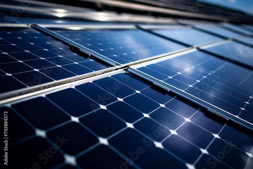Solar panels reflect sparkling light From the sun, sky and clouds, Clean energy and environment. Green energy concept