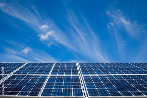 solar panels under a blue sky with clouds, symbolizing clean energy and environmentally friendly technology