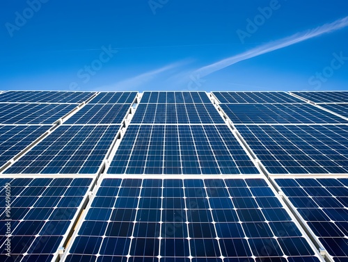 solar panels under a blue sky with clouds, symbolizing clean energy and environmentally friendly technology