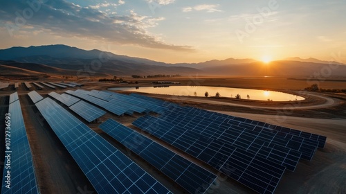 Solar Panels Under Sunset Sky for Clean Energy Production