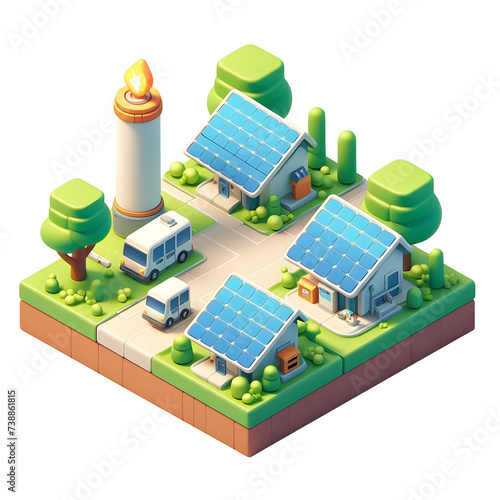 solar power on roof isometric 3d design Illustration on transparent background PNG