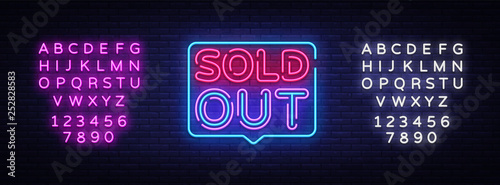 Sold Out neon text vector design template. Sold Out neon logo, light banner design element colorful modern design trend, night bright advertising, bright sign. Vector. Editing text neon sign