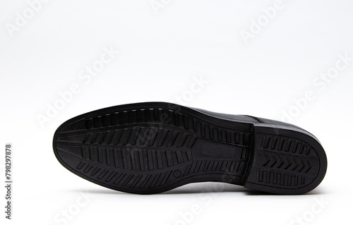 Sole for shoes, bottom view. Black Shoe sole close-up isolated on white background.
