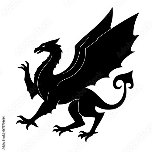 Solid black griffin perched silhouette logo symbol vector illustration design sign icon character on white background.