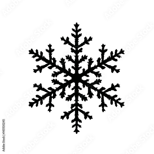 Solid black silhouette of a snowflake falling, vector EPS