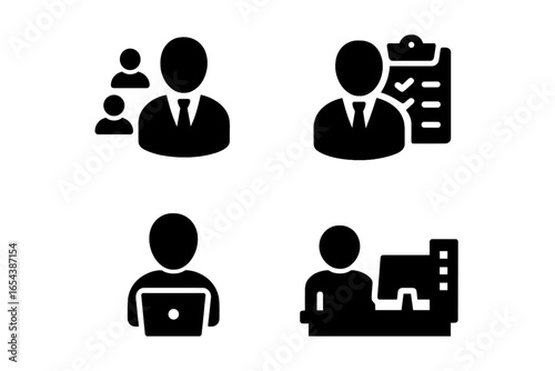Solid Filled Hybrid Team Icons Set Featuring Team Lead, Project Manager, Remote Worker, and Office Roles, Vector Illustration for Modern Workplace Collaboration and Dynamics