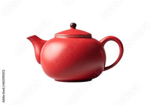 Solid Red Chinese Teapot with Short Spout Isolated on Transparent Background