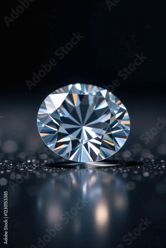 Solitaire diamond against dark background in focus, sparkles, smooth surface