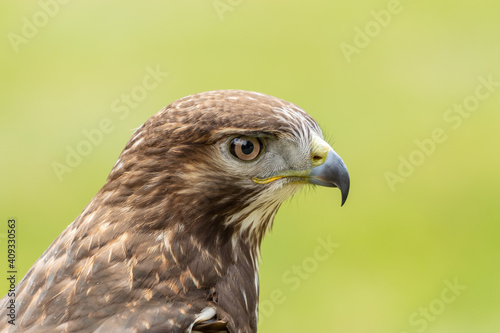 Solitary and beautiful Red-tailed Hawk intently watches its surroundings in the Grassland region of Alberta.