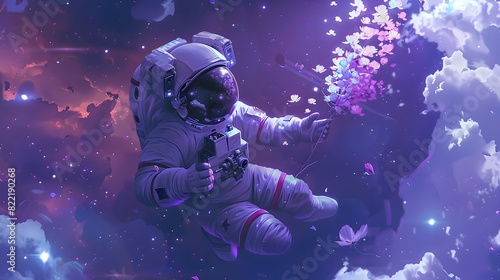 Solitary Astronaut Floating in Awe Inspiring Cosmic Landscape of Nebulae Stars and Ethereal Energies