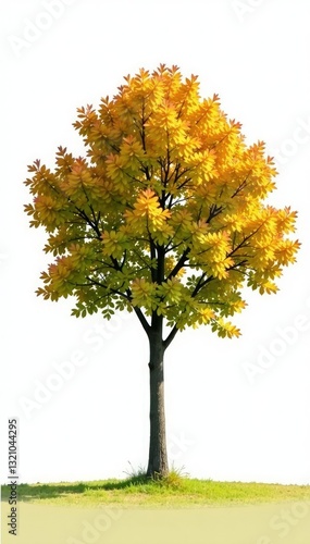 Solitary deciduous tree against a plain white backdrop, natural, foliage