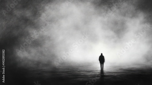 Solitary Figure in a Foggy Landscape: A Journey into the Unknown