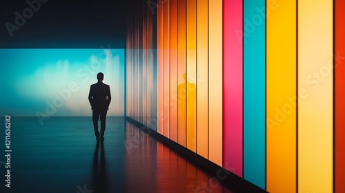 Solitary Figure in Vibrant Futuristic Tunnel for Editorial Product Launch