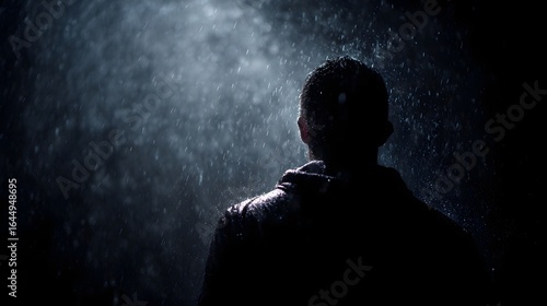 Solitary figure standing in the rain