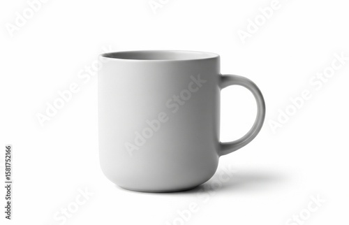 Solitary gray mug presents simple, clean design on plain white background, a modern kitchenware accessory.