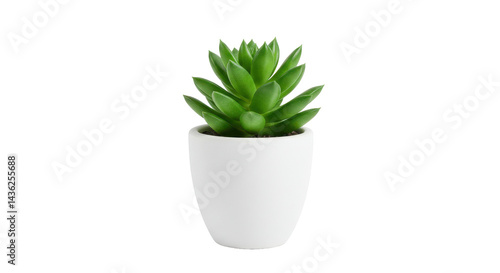 Solitary green succulent in a white pot on black