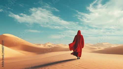 Solitary Monk Traversing the Vast Desert Landscape Symbolic Spiritual Journey