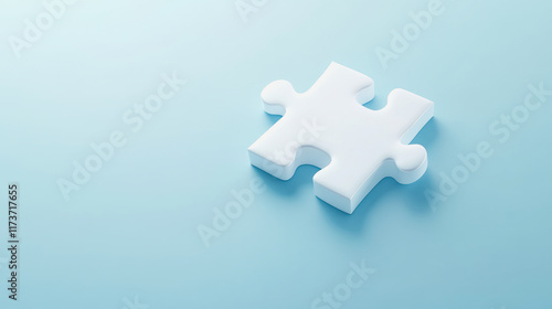 Solitary puzzle piece on a soft blue background showcasing simplicity and detail