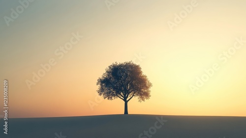 Solitary Tree Silhouette at Sunset Landscape