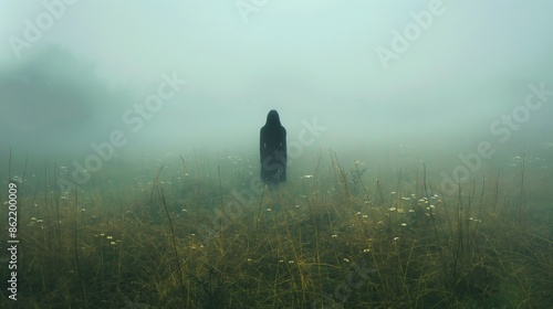 Solitary Woman Walking Through the Meadow