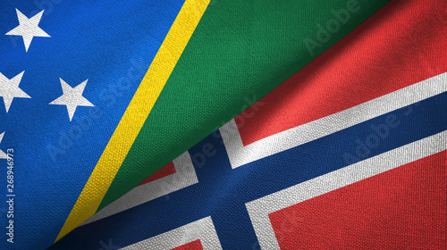 Solomon Island and Norway two flags textile cloth, fabric texture