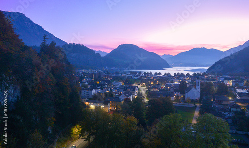 Sonnenuntergang über dem Vierwaldstättersee bei Stansstad, Schweiz