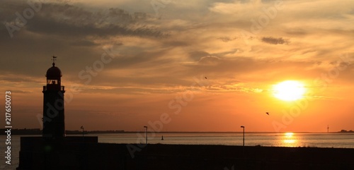 Sonnenuntergang über der Nordmole in Bremerhaven