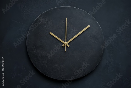 Sophisticated black wall clock featuring gold hands on a textured dark surface, exemplifying minimalist luxury design