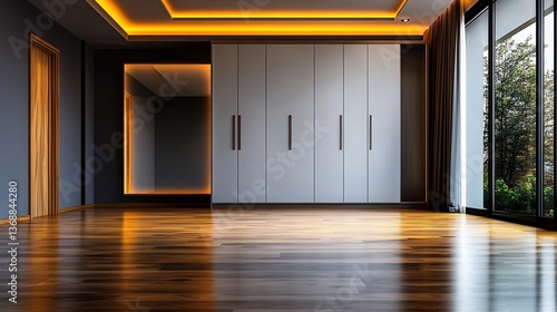 Sophisticated interior design showcasing a modern empty room with elegant wardrobe