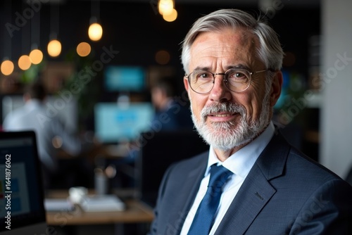 Sophisticated mature businessman amidst cutting-edge technology - A creative headshot capture